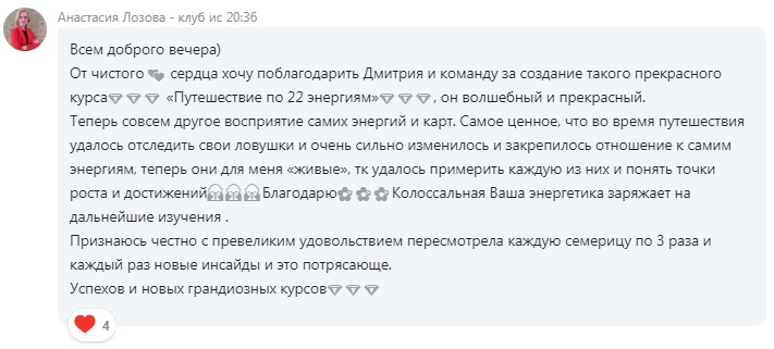 Благодаря информации курса вы сможете понять суть энергий, увидеть себя на лестнице из 22 ступеней, определить - что нужно, чтобы пойти дальше, что вас сдерживает и не даёт открыть потенциал энергий, записанных в вашей дате рождения.