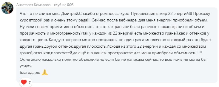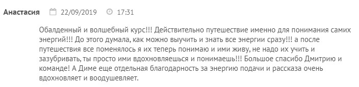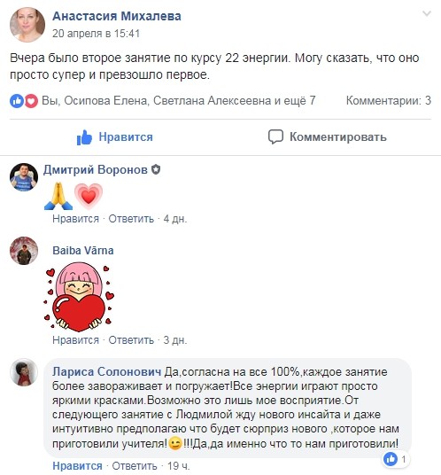 На втором занятии вы откроете для себя мир души, второй уровень. Движение между энергиями взаимосвязано, и это не рассказ просто о качествах. Это история, глубина, суть. Вы почувствуете на себе энергии, поймёте на какой ступени вы сейчас, где буксуете, какую ступень никак не можете пройти.